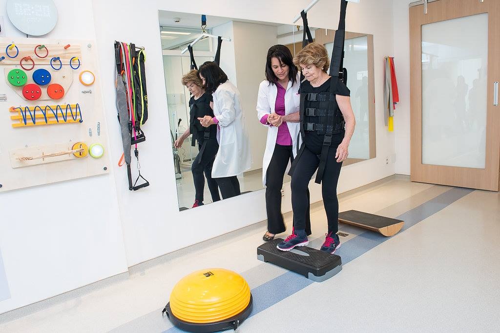 - Treino de equilíbrio e marcha com suspensão de peso